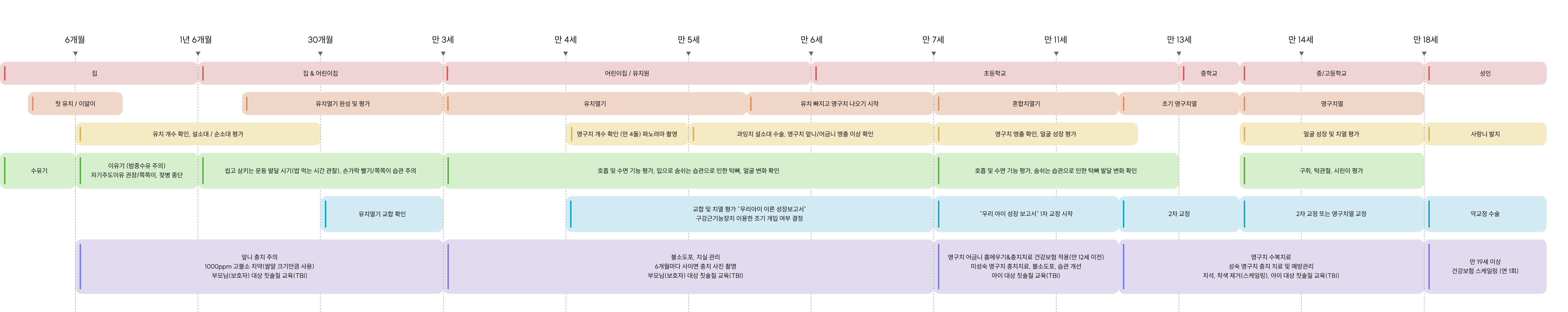 영유아기는 얼굴 성장의 기초가 형성되는 중요한 시기입니다. 이 시기에는 턱의 성장 방향과 구강 습관이 형성되기 시작합니다. 손가락을 빠는 습관이나 입으로 숨 쉬는 습관, 또는 혀의 위치는 앞으로의 치열과 얼굴 성장에 영향을 줄 수 있습니다. 하지만 대부분의 변화는 천천히 나타나기 때문에 부모님이 알아차리기 어려울 수 있습니다. 그래서 정기적인 관찰이 중요합니다. 서울성장하는치과는 아이의 작은 변화들을 차분히 살피고 기록합니다. 성장의 시작은 작은 관찰에서 시작됩니다.