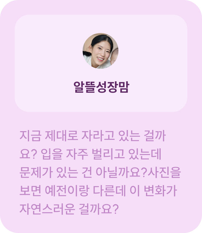 어느 순간부터 아이의 얼굴과 치열이 눈에 띄게 달라지기 시작합니다.